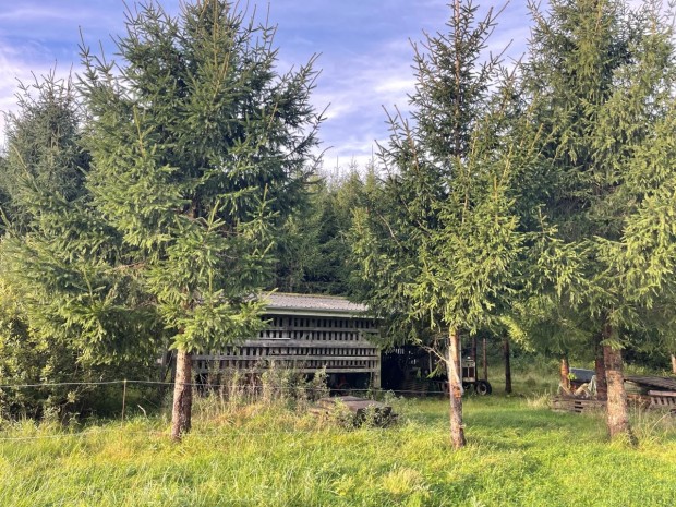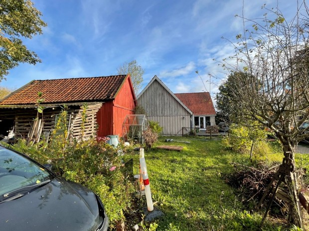 På grundstykket på modsatte side af offentlig vej, et fritliggende udhus (hestehus) opført 2014, ydervægge af træ, tag med bølgeeternit.