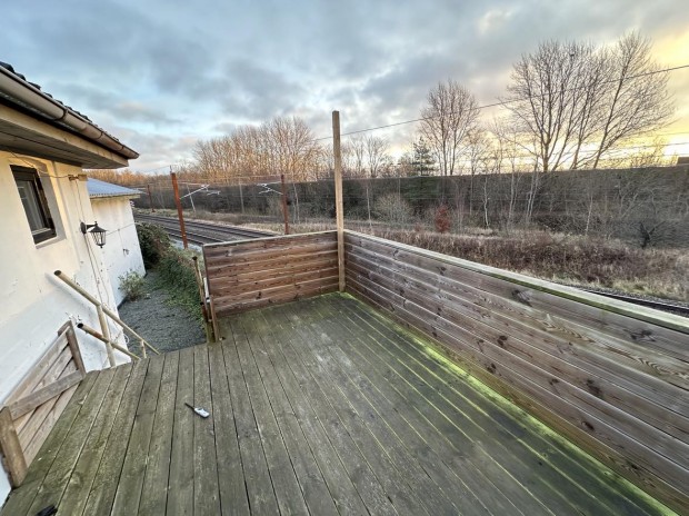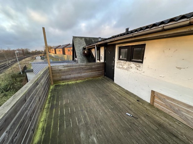 Beboelseslejligheden på 1. sal kan tilgås enten via trappe indenfor hoveddøren i stueetagen eller udefra via den store tagterrasse. Lejligheden på 1. sal består af en fordelingsgang som leder hen til en stue samt 3 øvrige værelser. Derudover rummer lejligheden et stort og moderne køkken samt badeværelse.