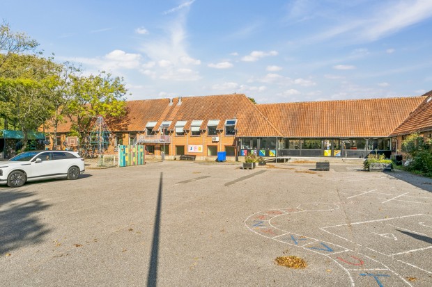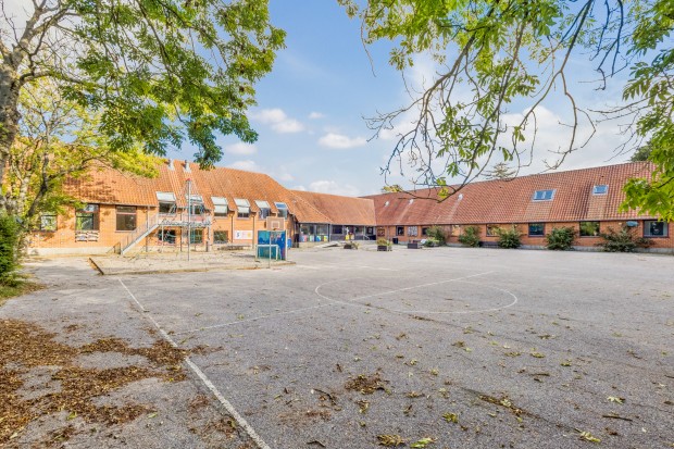 Omfatter skolens primære bygningsmasse indeholdende tidligere skole og børnehus samt et grundareal på 11133 kvm.