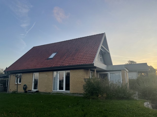 Obs.: Der er en lukket garage tilhørende boligen, hvor der er problemer med afløbet på taget, og der er trængt fugt igennem taget. Dette skal udskiftes.