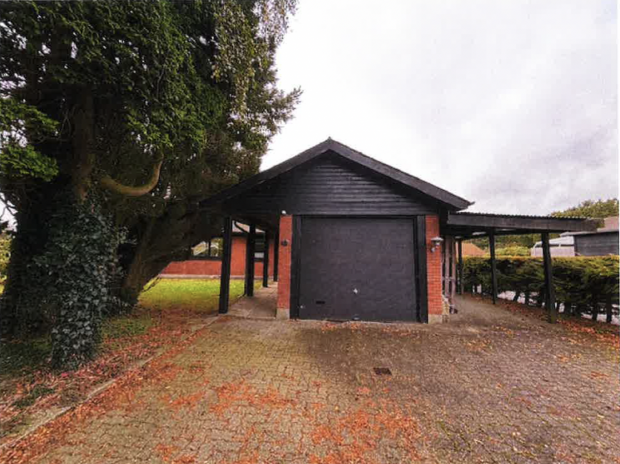Ejendommen har desuden en overdækket terrasse og et større udhus samt en garage. Ejendommen opvarmes iflg. BBR med fjernvarme/blokvarme.