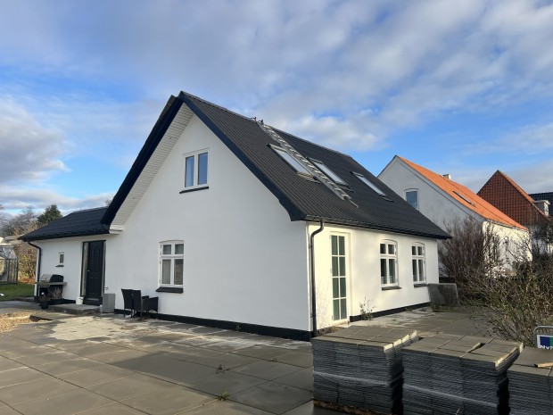 På førstesalen er der en repos og to værelser, også med laminat sildebensparket. I begge værelse mangler gulvet at blive lagt færdigt.
