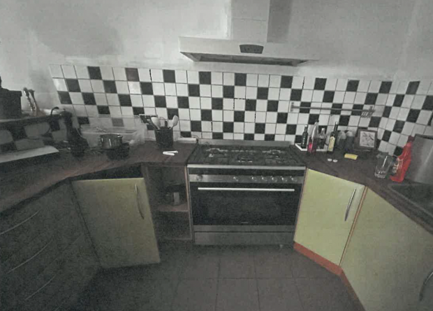 Fra ejendommens bagindgang kommer man ind i bryggerset med vaskemaskine, tørretumbler og skabsfryser. I bryggerset er der endvidere skabe med lyst trælåg og stålgreb. Fra bryggerset er der videre adgang til køkkenet. Køkkenet er med lyse klinker samt hvidt loft med spots. Selve køkkenet er med grønligefronter med stålgreb samt træbordplade. Køkkenet har hvidevarer i form af køleskab, gaskomfur og emhætte.