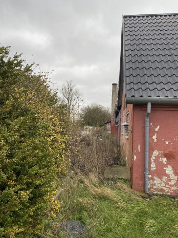 100 m² af bygningen anvendes til garage, depotrum og fyrrum, mens de resterende 90 m² er en tidligere staldbygning til kvæg hold, nu ombygget til udhus. Denne del er nu delvist indrettet som bar-område. Gulvet er cementgulv.
