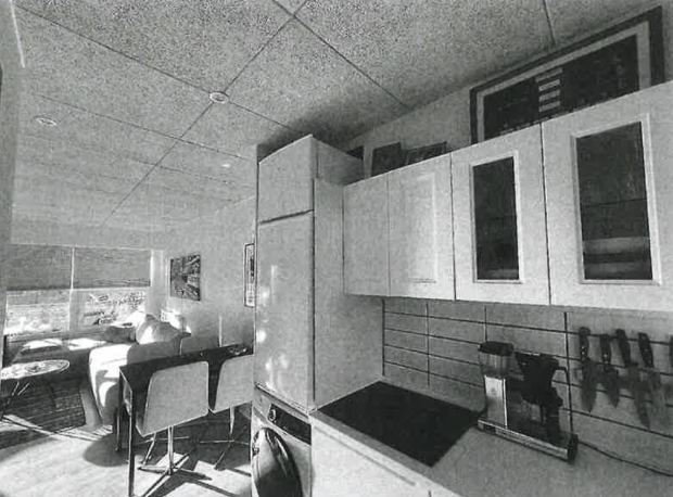 Køkkenet er placeret i stuen, og der er ligeledes lyst trægulv og troldtekt loft. Køkkenet er indrettet med en hvid laminatbordplade, elementer med skuffer med hvide fronter samt overskabe med vitrinedøre. Derudover er der i køkkenet registreret følgende hårde hvidevarer: Kogeplade med induktion (mrk. IKEA), emhætte (mrk. UKENDT), opvaskemaskine (mrk. IKEA), indbygget køle- og fryseskab (mrk. SENZ) samt kombineret vaskemaskine og tørretumbler (mrk. ELECTROLUX). Desuden er det oplyst af lejer, at lejlighedens ovn (mrk. IKEA) står opbevaret i kælderrummet.