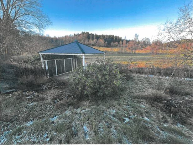 Ejendommen er en landligt beliggende 2 plans villa fra 70erne med udsigt til Roum Bæk. Til ejendommen hører en garage med plads til to køretøjer samt udhus, hvor pillefyret er placeret.