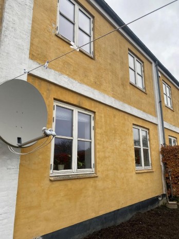 Ved besigtigelsen blev konstateret tre nedslidte vinduer (mørnet træ, defekte lister samt tegn på skimmelsvamp i vinduesrammen).