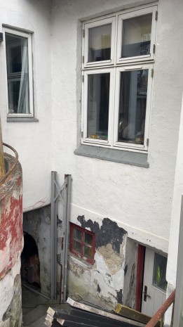 Ejendommen er beliggende på en lille blind stikvej, hvorfor der umiddelbart er begrænset trafik/støj, og alt andet lige kun folk med et ærinde/tilhørsforhold som befinder sig på vejen. Ejendommen ligger forholdsvis tæt på centrum og fjorden. Ejendommen har en forholdsvis stor baghave. Med de rette midler kan ejendommen muligvis gøres til to separate lejemål, idet der er separate indgange til hhv. stuen og 1. sal.