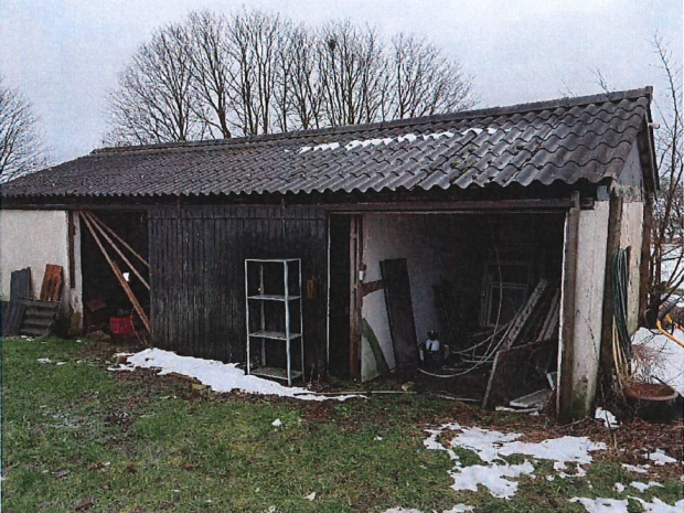 På ejendommen er der en gammel garage på 60 kvm. samt oplæg af nedrivnings materialer, både sten, beton og eternit plader ligger skubbet sammen i volde.