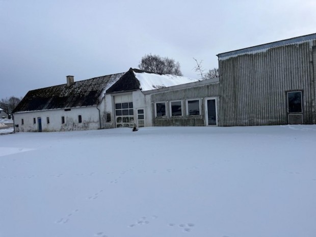 Ejendommen består af tre bygninger: Et stuehus, et værksted og en maskinhal.