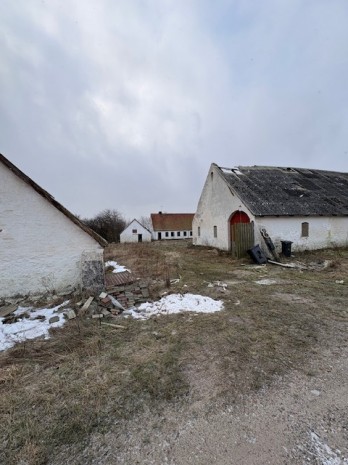 Flere rum i stuehuset fremstår uden funktionelle overflader, gulve er ophuggede eller fjernet, og vægge står i rå form med puds i opløsning eller helt fjernet. Loftskonstruktionen fremstår flere steder med synlige bjælker og nedbrydning. Der ses også tidligere badeværelse med væltet sanitet og nedfaldne installationer. Generelt fremstår bygningen uden køkken, uden badeværelsesfunktion og uden nogen form for brugbar indretning. Ejendommen vurderes derfor som værende tømt for inventar og efterladt i rå og ufærdig stand, uden synlige installationer, der fremstår funktionsdygtige.