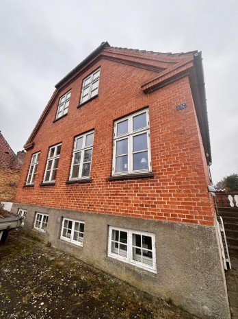 Rød murstensejendom fra 1930 med sort tegltag. Ejendommen består af en kælder, stueetage samt 1. sal.