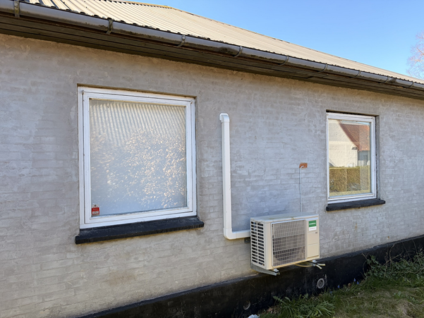 Ejendommens primære varmekilder er en varmepumpe i stue og elradiatorer. Herudover er der brændeovn i stuen. Varmepumpen ses ikke registrering i BBR-registret.