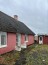 Ejendommen ligger ud til vejen, omkranset af marker. Forsiden af ejendommen mod vejen er omkranset af en rød mur af beton.