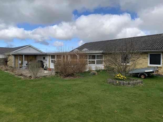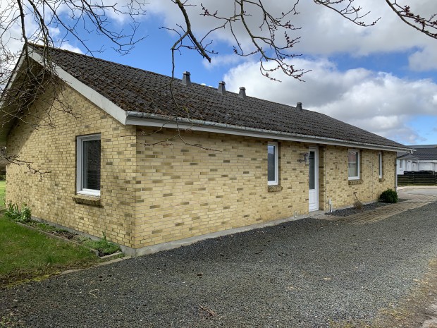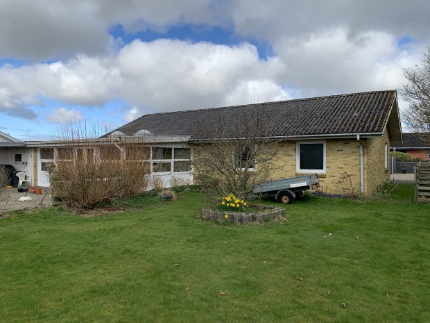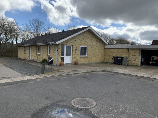 Gulstens etplansvilla med betontagsten og hvidmalede vinduer, opført i 1979 og ombygget i 1988, med et ifølge BBR samlet boligareal på 149 m², heraf 29 m² indbygget udestue. Boligen er indrettet med entré, køkken, stue med udgang til udestue, fordelingsgang, bryggers, badeværelse samt 3 værelser. Tillige garage, opført i 1979, på 48 m², heraf 16 m² indbygget udhus. Opvarmning ved fjernvarme. Fra havestue er der udgang til terrasse med delvis overdækning. Stor velanlagt lukket have. Indkørsel belagt med fliser og granitskærver. Beliggende for enden af lukket villavej. Der henvises i øvrigt til vedhæftede ejendomsdatarapport samt BBR-meddelelse.